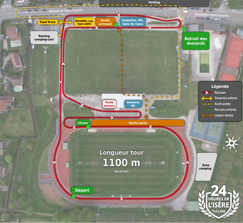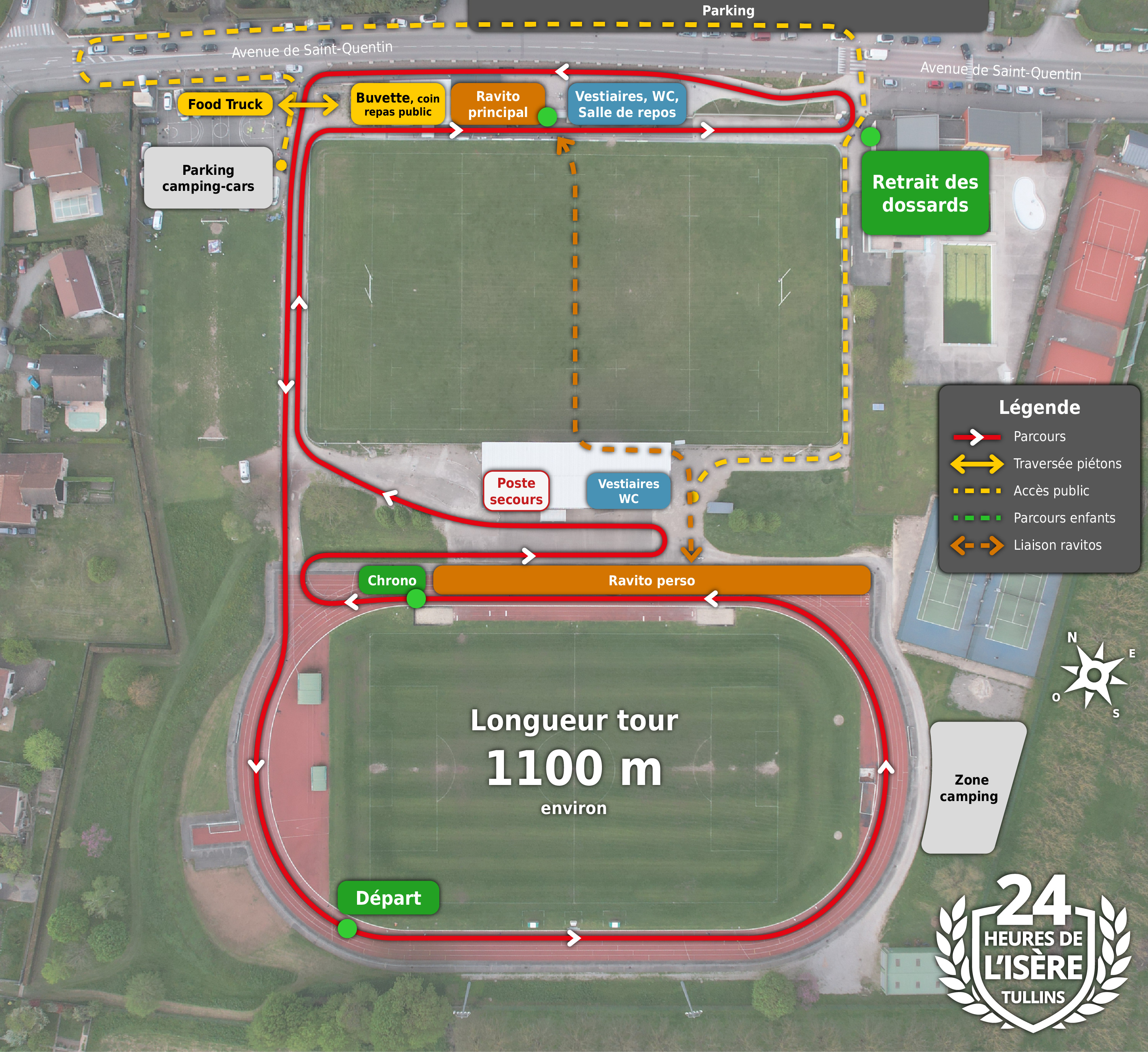 Sur Google Maps ou Waze, cherchez « Les 24 Heures de l’Isère à Tullins » ou « Stade Jean Valois, Tullins » pour nous trouver directement !